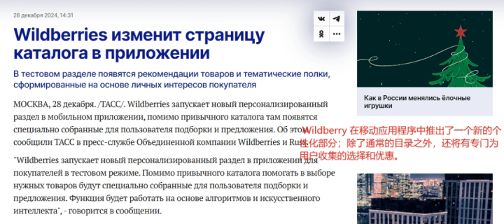 技术创新领域动作频频。Wildberries在移动应用程序中推出新的个性化版块,基于AI技术为用户提供精准商品推荐和优惠信息。