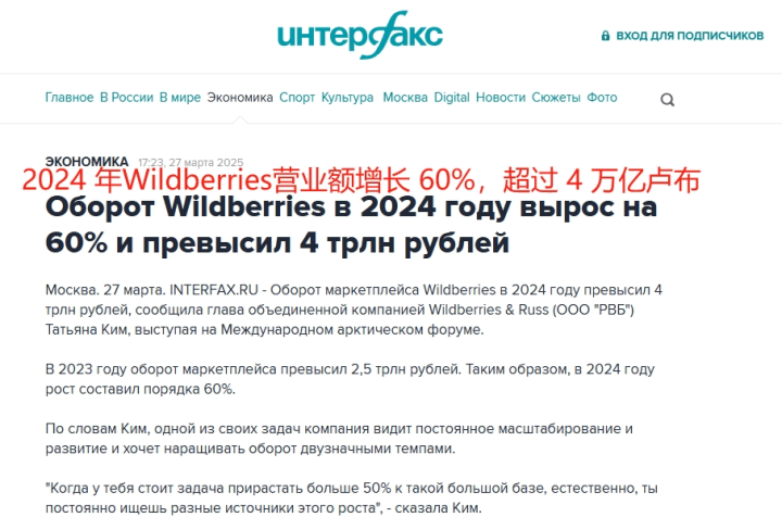 Wildberries的国际化雄心建立在强劲的业绩基础上。最新财报显示,2024年Wildberries营业额突破4.1万亿卢布,较2023年的2.5万亿卢布飙升60%。